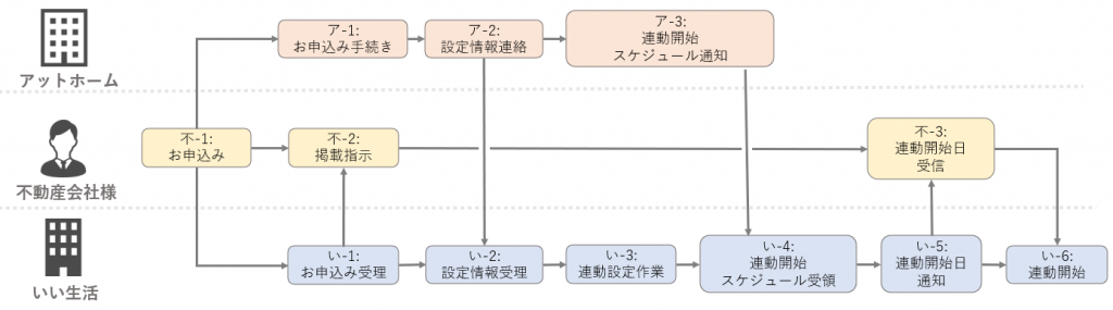 不動産会社様より、いい生活とアットホームへ連動のお申込みを行います。(不-1)